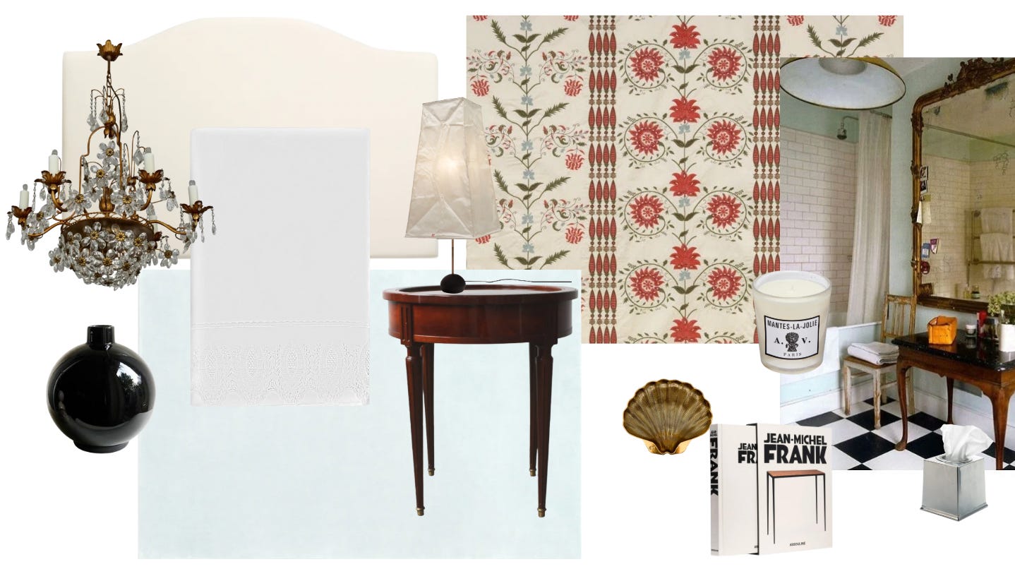 I love the idea of an interesting light fixture. Adding personality here especially in a bedroom, is a touch of mine I love to include when designing a space. During my design process for my new bedroom in Connecticut, I am looking to add a chandelier that is antique where the light reflects through glass beautifully. This vision board above is a loose reference of the story I would like it to reflect. Natural, serene, and extremely personal. I cannot wait to take you guys through the finishing details this spring!